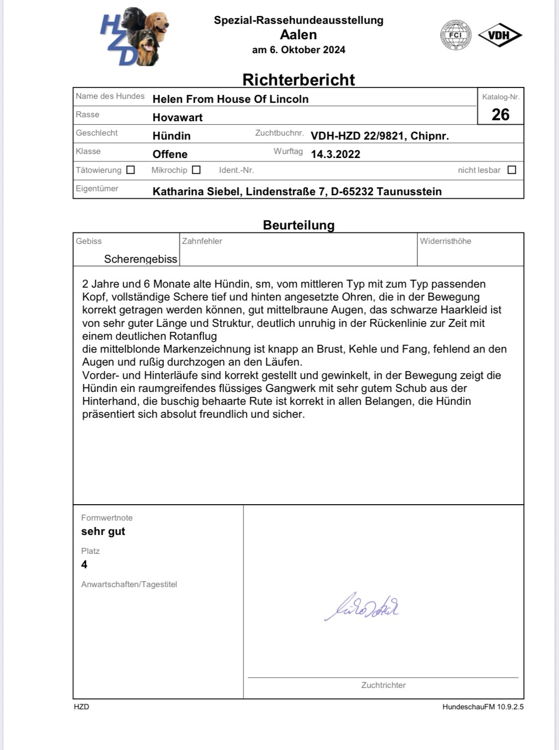 Sie ist ein wahrer Sonnenschein, jeder der sie kennenlernt bewundert ihr offenes und freundliches Wesen. Trotzdem hat sie Hovawart typisch immer alles im Blick, bewacht das Grundstück und achtet mit einem unvergleichbaren Feingefühl auf mich und meine Tochter sodass es anderen gar nicht auffällt wie sie galant und freundlich die Lage einschätzt.