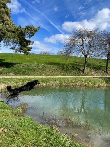 Helen, von uns fast ausschließlich „Saubeutel“, „Saubeutelchen“ oder „Saubeutelino“ genannt, ist unsere 5. Hovawart Hündin, und mit doch recht großem Abstand die verrückteste. Sie bereichert uns alle jeden Tag mit ihrer puren Lebensfreude und ihrem Humor. Sie ist in allen Situationen ein sicherer und verlässlicher Begleiter. Sie begleitet mich am Pferd, beim Radfahren, joggen, wandern, und wären Hunde in Schwimmbädern zugelassen würde sie auch hier mit mir die Bahnen ziehen. Sie ist nämlich auch eine begeisterte Schwimmerin. Doch auch trotz ihres Temperamentes ist sie ein zauberhafter „Kinderhund“, geduldig, liebevoll und einfach herzzerreißend mit meiner 4-jährigen Tochter.